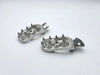 Our E-Moto Elite Foot Pegs are specifically designed to fit the lightweight E-Moto bikes. Forged from 7075T6 aluminum and CNC machined, these foot pegs offer immense strength. They include stainless teeth, with optional titanium teeth coming soon. The pegs use OEM springs and pivot pins. The platform is a massive 3 5/8" long x 2 3/8" (89 x 58mm), providing ample support and stability. The pegs are 1/4" back from the OEM location. Available in eight anodized colors.